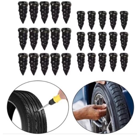 Os parafusos são fabricados em material durável para garantir segurança durante o uso. O formato especial do macarrão faz com que eles se fixem melhor no corte provocado no pneu e vedem rapidamente o furo, possibilitando a continuidade segura do trajeto até um reparo definitivo.