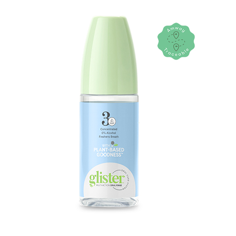 Com sua fórmula de sucesso comprovado, o Enxaguante bucal multi-action Glister™ ajuda a reduzir significativamente a placa bacteriana, em comparação com a escovação isoladamente. Sua fórmula livre de álcool ajuda a remover as bactérias que podem causar o mau hálito e a gengivite. Fórmula atualizada com Plant-Based Goodness que inclui uma combinação aromatizante aprimorada com hortelã certificada pela Nutrilite™, para proporcionar um hálito fresco e duradouro com um delicioso sabor de hortelã. A fórmula do Enxaguante bucal multi-action Glister™ agora é livre de parabenos, SLS (Lauril Sulfato de Sódio), corantes artificiais, ingredientes de origem animal, álcool e açúcar. A tampa também funciona como unidade dosadora para diluição, com linhas indicando a dose recomendada. O Enxaguante bucal multi-action Glister™ vai deixar seus dentes e boca mais limpos quando usado como parte do sistema de higiene bucal Glister™. Ao ser usado de acordo com as instruções, este produto contribui para manter o equilíbrio do microbioma oral.