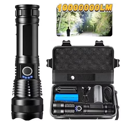 A lanterna tática T9 P50 oferece até 1 milhão de lumens e 5 modos de iluminação para máxima eficiência em segurança, acampamento ou fazenda.